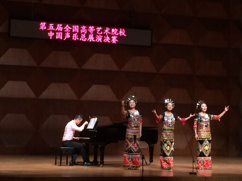 9月25日晚,第五届全国高等艺术院校中国声乐总展演决赛在星海音乐学院进行。我校教育学院音乐学专业青年教师“椰子壳”组合方丽珠、张亚丽、董伽,以改编三重唱《黎家心花开》荣获全国铜奖。这首作品由教育学院毋海明老师改编并荣获全国优秀指导教师奖。担任钢琴伴奏的是艺术与创意学院青年教师欧振华。