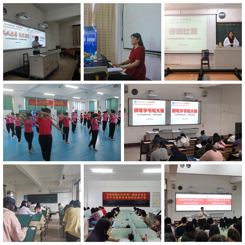 活动周期间,按照活动开展方案要求,学院团委和各专业积极行动,开展了多项各具特色的职教宣传活动,取得了良好效果。学院层面,邀请2009届优秀毕业生徐家林为同学们做就业指导讲座,邀请陵水阿罗哈酒店人力资源部总监杨丽到校洽谈校企合作,举办社团才艺展示、大学生篮球赛、拔河比赛、海洋知识竞赛和书画比赛等活动;专业层面,学前教育专业志愿者深入社区、幼儿园开展育儿技能科普及志愿服务活动,同时还举办手工工艺品制作比赛、舞蹈比赛和声乐比赛等;语文教育专业结合专业特点开展了钢笔、粉笔书写比赛,说课比赛以及教案设计比赛等;会计专业开展会计业务与财务报表编制技能大赛。校园内外洋溢着青春的热情、职业的精神,展现了职教的风采、技能的魅力。
